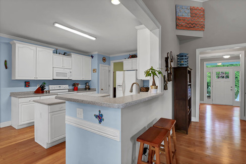 As you enter the home, foyer brings you into either the Great Room with fireplace next to the open concept kitchen and generous breakfast area or from the foyer you may enter the formal dining room that flows into the kitchen that has a large island. Plenty of counter space.